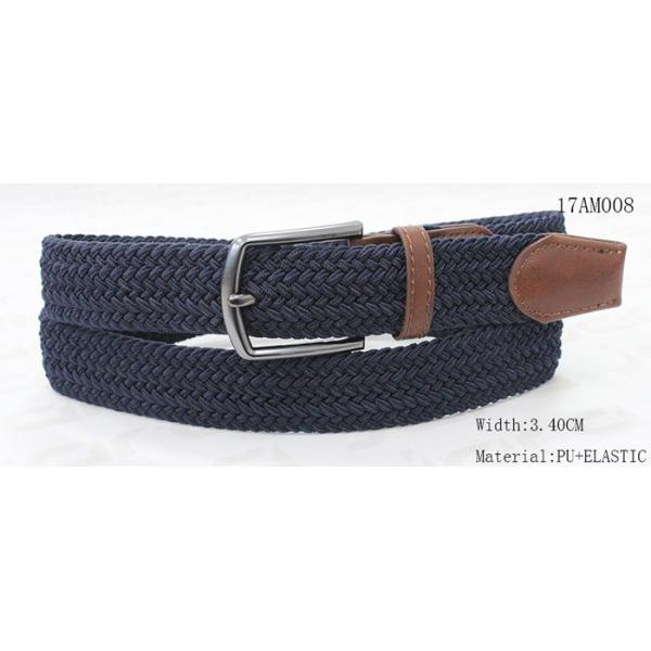 Navy Polyester / Brown PU Mens Stretch Belts Shiny Old Silver Buckle Available Images |